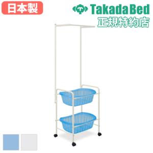 法人送料無料 脱衣カゴ 2段 ハンガーバー付き ブルー ホワイト 2段タイプ カゴ付 脱衣所 ポールハンガー 洗濯用品 ハンガー掛付脱衣カゴ TB-73-2728
