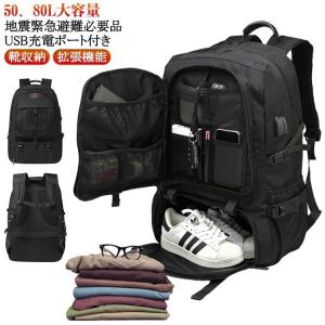 地震 災害対策 50L 80L 拡張機能 靴収納 USB充電ポート付き リュックサック 大容量 リュック メンズ ビジネスリュック バックパック ラッ