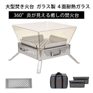 焚火台 折りたたみ キャンプ ガラス製 焚き火鑑賞大型 焚き火スタンド4面透明デザイン おしゃれ アウトドア 収納バッグ付き 携帯便利 薪台 手入れ簡単