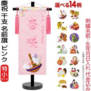 雛人形 ひな人形 名前旗 女の子 慶祝 干支 ピンク(特小)ピンク刺繍 生年月日 名前入れ代金込み 金襴 縮緬 黒塗スタンド付 3ad-eto-ts-p