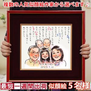 還暦祝い プレゼント 似顔絵ポエム 朱色色紙額 5人用 似顔絵 お名前 名前詩 ネームインポエム 60歳 60才 両親 父 母 男性 女性 贈り物 上司 ギフト 誕生日