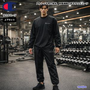 チャンピオン サウナスーツ 上下セット ユニセックス 減量衣 シャツ パンツ C8CSW20 上下 トレーニングウェア 家トレ 汗だし効果 ジャケット ズボン 発汗