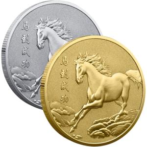 2026年 干支 コイン メダル 馬 午年 記念 硬貨 金 開運 金運 金貨 銀貨 競馬 お守り (ゴールド・シルバーセット)