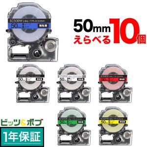 テプラテープ 50mm 互換 テープ テプラプロ テプラ PRO フリーチョイス 強粘着 全6色 色が選べる10個セット キングジム 用