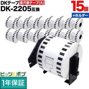 本日ポイント10倍 ブラザー用 ピータッチ DKテープ (感熱紙) DK-2205 互換品 長尺紙テープ(大) 蛍光増白剤不使用 白 62mm×30.48m 15個セット+ホルダー1個