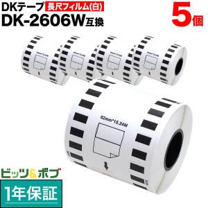 本日ポイント10倍 ブラザー用 ピータッチ DKテープ (感熱フィルム) DK-2606W 互換品 長尺フィルムテープ(白色) 白 62mm×15.24m 5個セット
