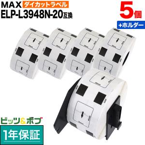 本日ポイント10倍 マックス用 感熱紙ラベル ダイカットラベル ELP-L3948N-20 互換品 宛名ラベル 白 39mm×48mm 620枚入り 5個+ホルダー1個セット