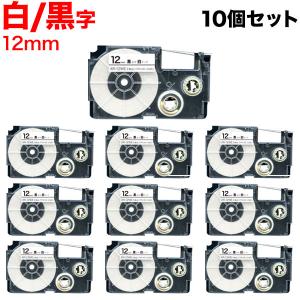 ネームランド テープ 12mm 互換 XR-12WE 白 ラベル 黒 文字 10個セット カシオ 用