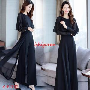 パンツドレス 結婚式 お呼ばれドレス 黒 韓国 パーティードレス セットアップ フォーマル シフォン ワイドパンツ 大きいサイズ 3l