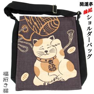 開運亭 縁起ショルダーバッグ 福招き猫 綿100% 前田染工