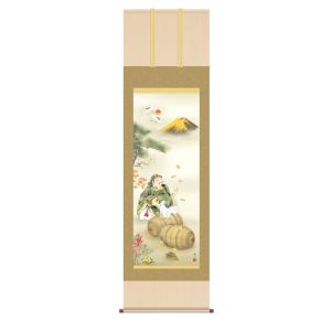 掛軸 (掛け軸) 吉祥七福満願図 鵜飼雄平(尺三立・紙箱入り)約横44.5×縦164cm g4492 開運 縁起 吉祥 招福 お祝い 御祝 贈答 贈り物