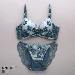 ブラジャー ショーツセット ダスティ ブルーム エンブロイダリー 育乳 脇高 ブラジャー & バック透け Tバック ショーツ セット