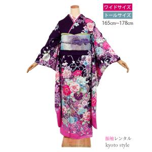 振袖 レンタル 成人式 大きいサイズ トールサイズ フルセット 結婚式 振袖レンタル 着物 レンタル 振り袖 ワイドサイズ 紫 パープル 高身長 72121