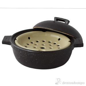 ビストロ蒸し鍋 クロ 小(2〜3人用) レシピ・陶製すのこ(蒸し鍋)・トング付き ( 長谷園 手作り 炊飯 ごはん おかゆ おすすめ 伊賀焼 結婚 出産 )