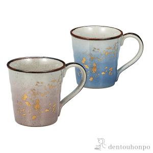 ペアマグカップ 釉彩金ちらし ( 退職祝い 定年 プレゼント デザイン マグ オリジナル タンブラー 九谷焼 結婚 出産 内祝い 引き出物 金婚式 )