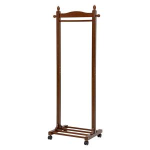 ハンガーラック/コートハンガー 〔ブラウン 幅60×奥行40×高さ154cm〕 木製 棚板 キャスター付き 組立式 〔寝室〕 代引不可