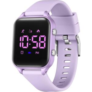 デジタル 腕時計 男の子 子供 活動量計 キッズ 女の子 5ATM防水 充電式 スポーツウォッチ 歩数計 距離 誕生日 MDM(03-パープル)