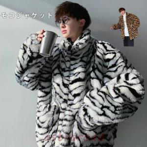 フェイクファージャケット メンズ ゼブラ柄 シマウマ柄 ファーコート ボアジャン ボアコート ロングコート ボア 韓国 ファッション ボアジャケット モコモコ