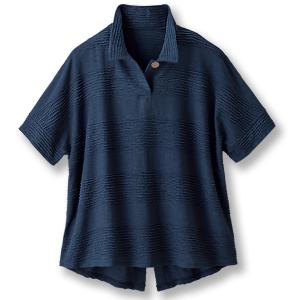 プルオーバー トップス レディース おしゃれ ミセス シニア ファッション 50代 60代 70代 80代 襟付ジャカードプルオーバー