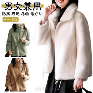 ゆったり ボア スタンドカラー ジャケット 大人 メンズ ベージュ アウター 冬 韓国 防風 ボアジャケット フリース ジャケット 男女兼用 ボア