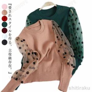 レディース 韓国ファッション ニット セーター ラウンドネック 長袖 トップス キュート 大人 可愛い きちんと感 清楚 透け感 甘口コーデ デート おしゃれ デイ