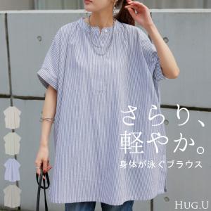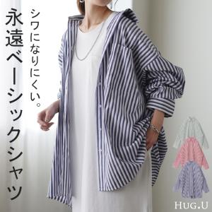 シャツ レディース トップス ストライプシャツ ストライプ 長袖 シワになりにくい チュニック 羽織 体型カバー ブラウス オーバーサイズ