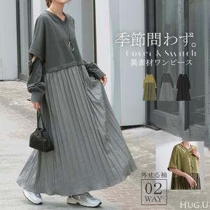 ワンピース ロング 長袖 半袖 2way ワンピ レディース 袖 取り外し 可能 ロングワンピース Aライン マキシ マキシワンピース ワンピ ロングワンピ ドッキング