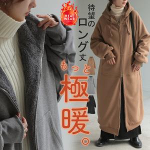 パーカー ボア ロング レディース トップス アウター 極暖 ロングパーカー 無地 長袖 ダブルジップ お尻が隠れる