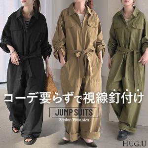 オールインワン つなぎ 綿100 レディース ジャンプ スーツ トップス パンツ ロング オーバー ドロップショルダー ミリタリー オーバーオール ロングパンツ