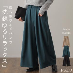 パンツ レディース ワイドパンツ ロング 体型カバー フレアパンツ ボトムス タックパンツ ゴム