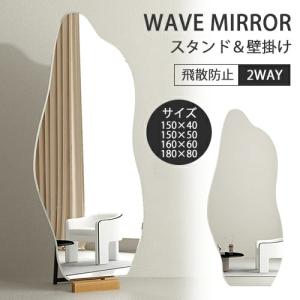 10%OFF期間限定★スタンドミラー 全身 高160cm 姿見え ウェーブミラー 2WAY 全身鏡 150cm 立て掛け 壁掛け 180cm フレーム無し 姿見鏡 スタンド 壁掛けミラー