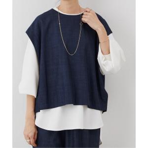 ベスト ジレ リネン混Uネックフレアベスト レディース
