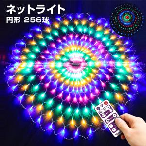 イルミネーション クリスマス ライト LED 屋外 ネットライト レインボー 丸型 直径1.5m 256球 リモコン タイマー 防水 キャンプ クリスマス 電飾