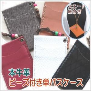 ビーズ付きパスケース 定期入れ 革 メンズ レディース スエード紐付き 送料無料 卒業 入学 就職 通勤 お祝い プレゼント