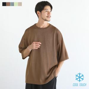 サマーニット ニット トップス メンズ 夏 夏服 半袖 5分袖 シアー 透かし編み 接触冷感 クルーネック 通気性 無地