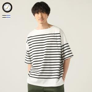 Tシャツ バスクシャツ カットソー 尾州 12オンス ボートネック サイドスリット ボックスシルエット 5分袖 半袖 綿100%
