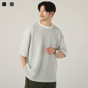 プルオーバー ニット ニットソー ワッフル メンズ メンズファッション 2トーン ビッグワッフル ニット ワッフルニット トップス 半袖
