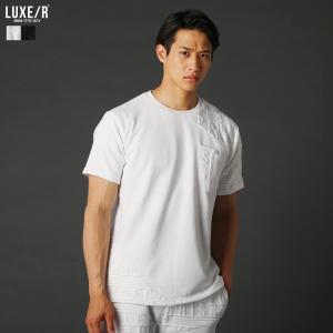 【セットアップ対応】 カットソー Tシャツ メンズ 夏 半袖 クルーネック 胸ポケット ジャガード ミニ裏毛 ロゴ 切り替え LUXE/R 45423