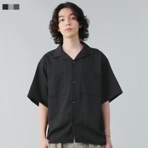 オープンカラーシャツ シャツ メンズ メンズファッション 夏 夏服 半袖 5分袖 オープンカラー リネンライク オーバーサイズ 胸ポケット 無地 ブラック グレージ