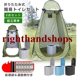 【お得4点セット:テント+簡易トイレ+凝固剤+処理袋】非常用 災害用 防災 水洗 折りたたみ 車 介護 キャンプ アウトドア 登山 避難 緊急 携帯 グッズ 2点セット