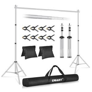 EMAR 背景スタンド 撮影スタンド シルバー 00x300c 幅、高さ調節可能 背景布/グリーンバックスタンド 生放送、web会議、ビデオ通信