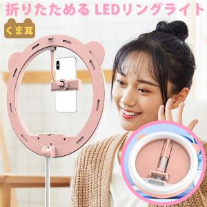 LEDリングライト クマ耳 ピンク スタンド付き LEDサークルランプ 自撮り フィルリングライト ライブストリーミング かわいい LT-RG002 送料無料