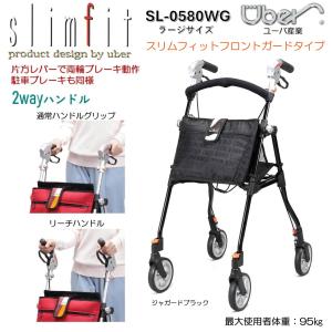 歩行車 歩行器 屋外 屋内 スリムフィット ガード付 ラージサイズ ジャガードブラック SL-0580WG 軽量 コンパクト 2WAYハンドル 送料無料 ユーバ産業