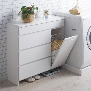 組立不要 隠せる脱衣カゴ付きサニタリーチェスト カゴ1個・引き出し 幅90奥行30cm トイレ 洗面所 ランドリー収納 洗面所収納 隙間収納 631213