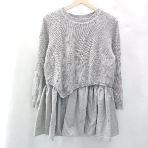◇ fifth フィフス 異素材 ギャザ− フレア インナ−シア− 長袖 ニットチュニック 表記なし グレー レディース E