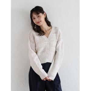 カーディガン 透かし編みVネックニットカーディガン レディース