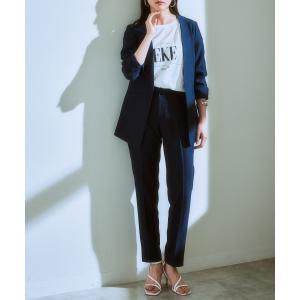 セットアップ 「洗える」リネンライク ストレッチロング丈ノーカラージャケットパンツスーツ(ジャケット+テーパードパンツ) レディース