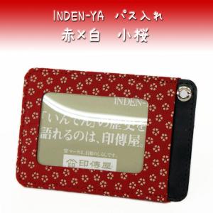 印傳屋 印伝 パス入れ 定期入れ 2525 赤地鹿革 白漆 小桜柄 爆買