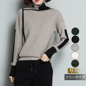 ニットセーター レディース ニット 長袖 ニットソー バイカラー 配色 ハイネック タートルネック 通勤 エレガント 秋冬 上品 韓国風 送料無料