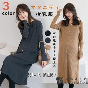 マタニティ 服 妊婦服 授乳服 ワンピース おしゃれ 春 秋 冬 お宮参り フォーマル 長袖 前開き リブニットワンピース ニットワンピ 長袖 レディース